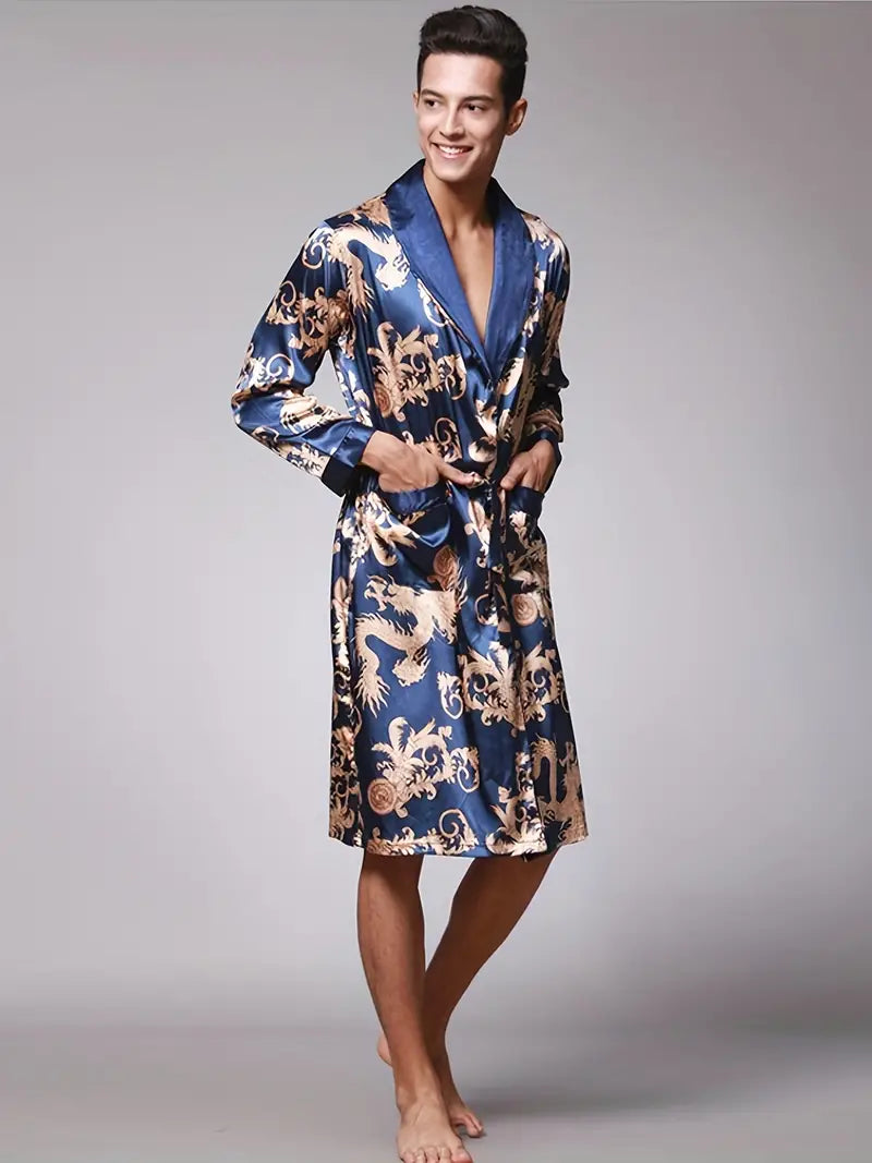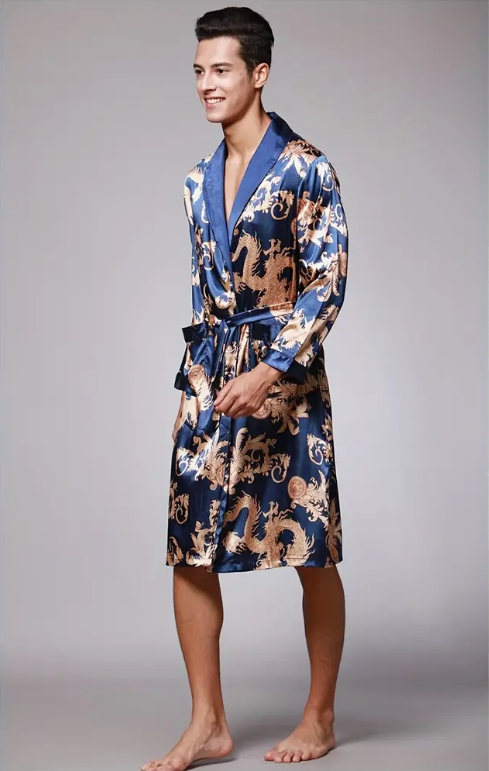 Offrez-vous un moment de détente ultime avec ce peignoir luxe pour homme, au design original et élégant. Fabriqué en tissu Doux, il présente un magnifique imprimé dragon sur un fond bleu. Ce peignoir, issu de la collection Peignoir homme luxe, incarne la fusion parfaite entre style et confort, idéal pour sublimer vos instants de bain.