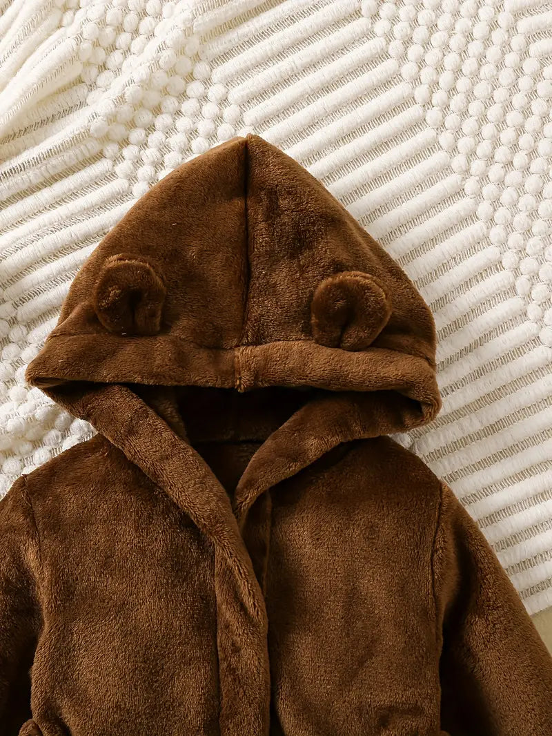 Ce peignoir en éponge doux est spécialement conçu pour envelopper votre enfant après le bain, jusqu'à 2 ou 3 ans. Avec ses adorables oreilles sur la capuche, il offre un moment de tendresse et de chaleur.
