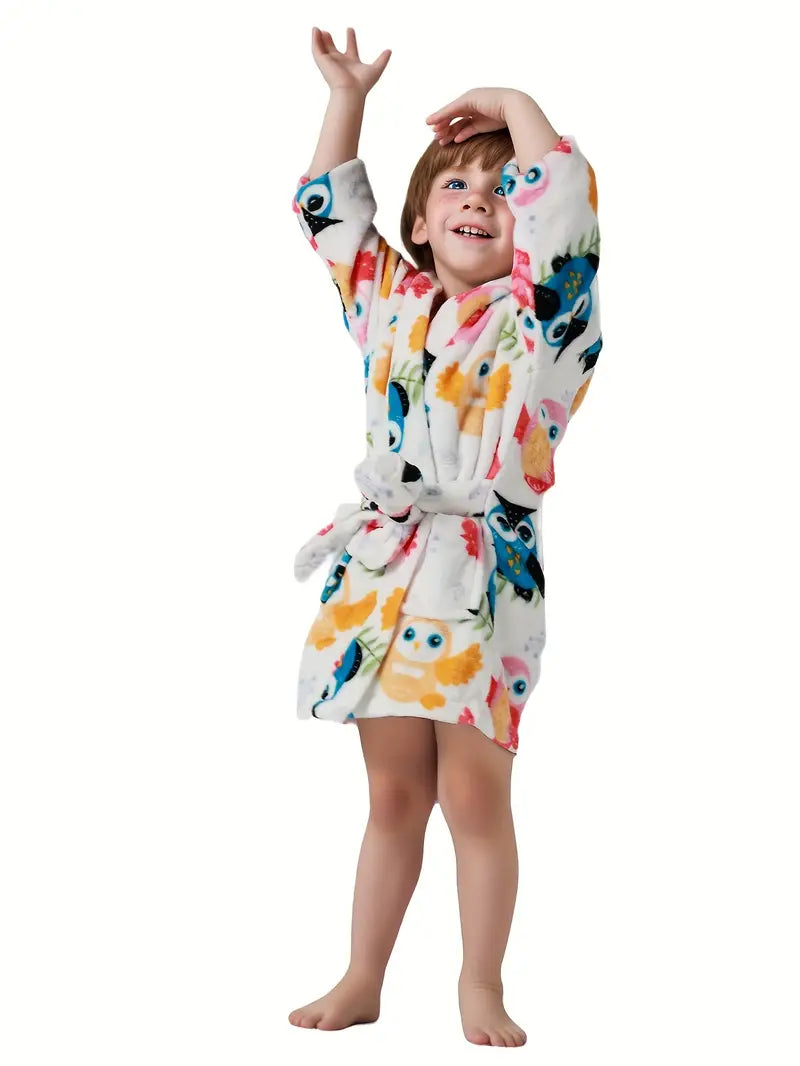 Ce peignoir en éponge pour enfant au motif hiboux rend chaque sortie de bain plus douce et amusante. Idéal pour les garçons et les filles, il garantit un séchage rapide et un confort optimal.