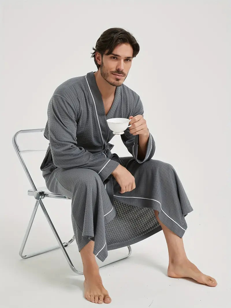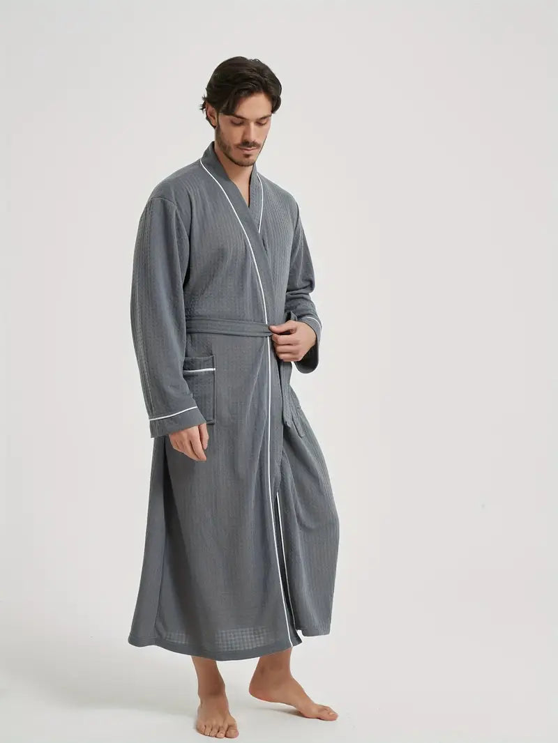 Offrez-vous un moment de détente ultime avec ce peignoir long et Doux pour homme. Conçu en tissu nid d'abeille de luxe, il transforme chaque bain en une expérience de bien-être. Collection Peignoir homme alliant luxe et confort.