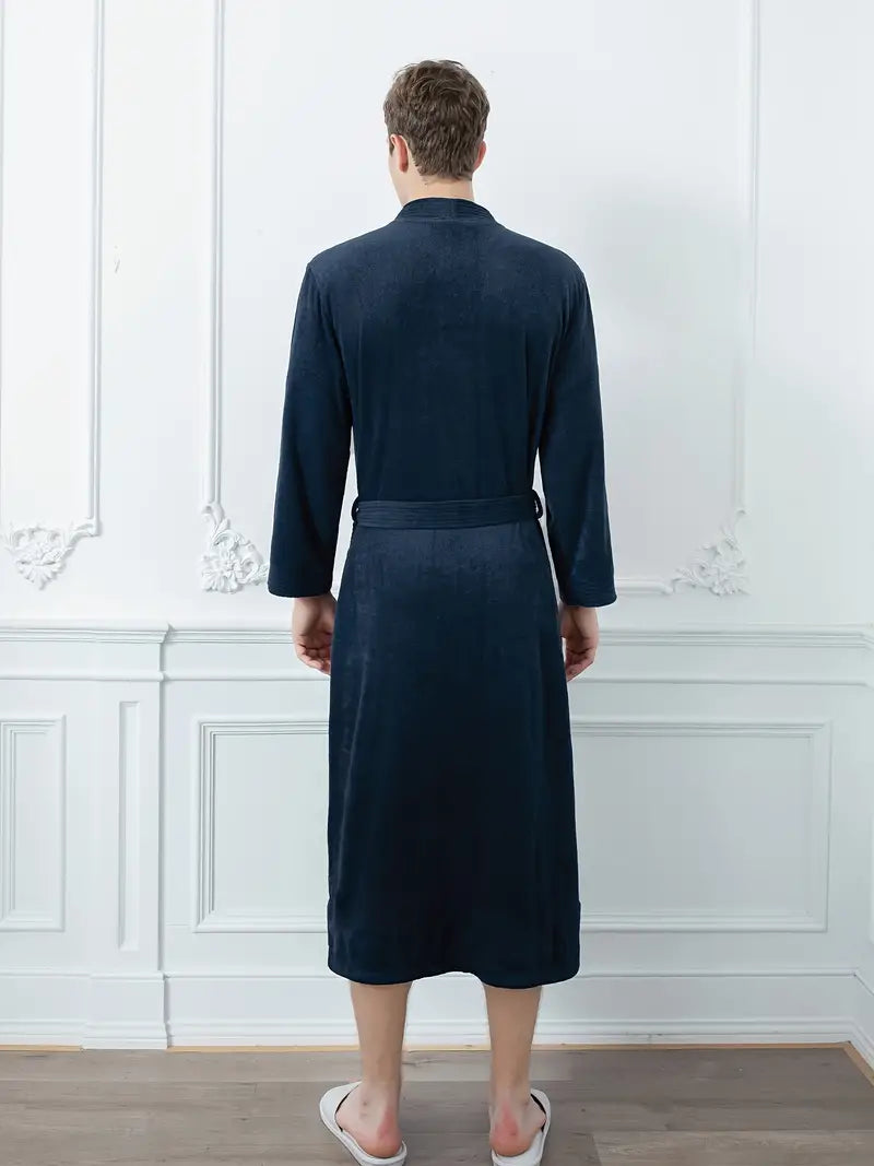 Appréciez le confort ultime avec ce peignoir long pour homme en coton doux, idéal pour un moment de détente après le bain. Collection Peignoir homme, il allie originalité et élégance.