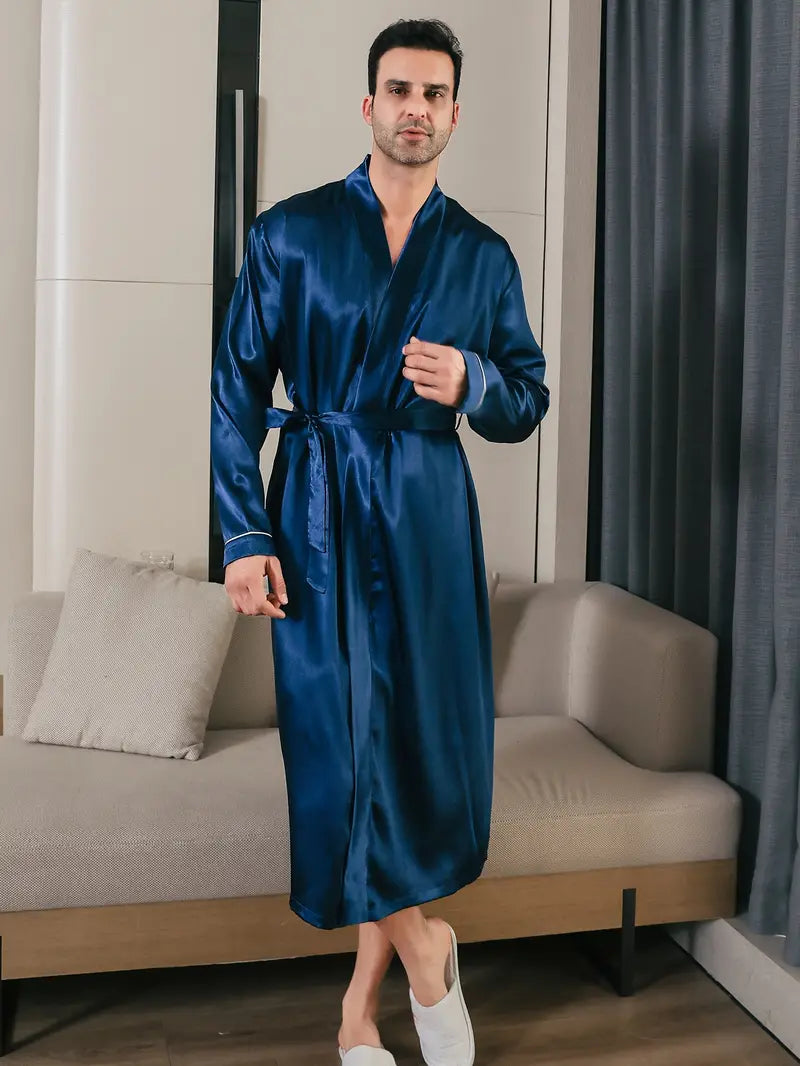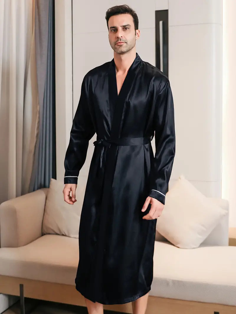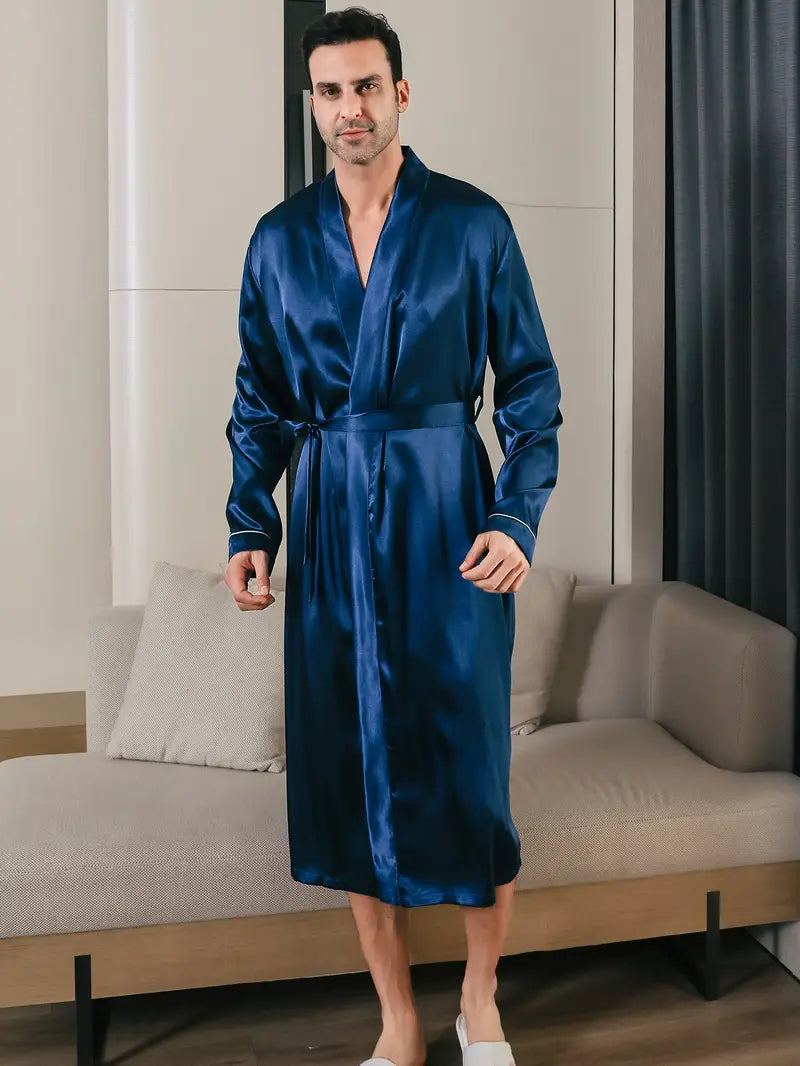 Découvrez l'élégance et le confort absolu avec ce peignoir en satin pour homme. Son design original inspiré du kimono ajoute une touche de luxe à votre routine quotidienne après le bain. Ce modèle Doux et fluide fait partie de la collection Peignoir homme luxe.