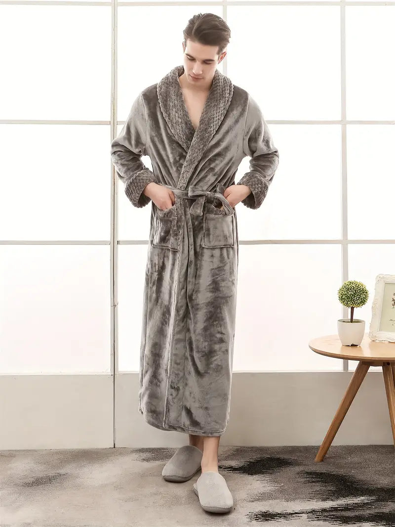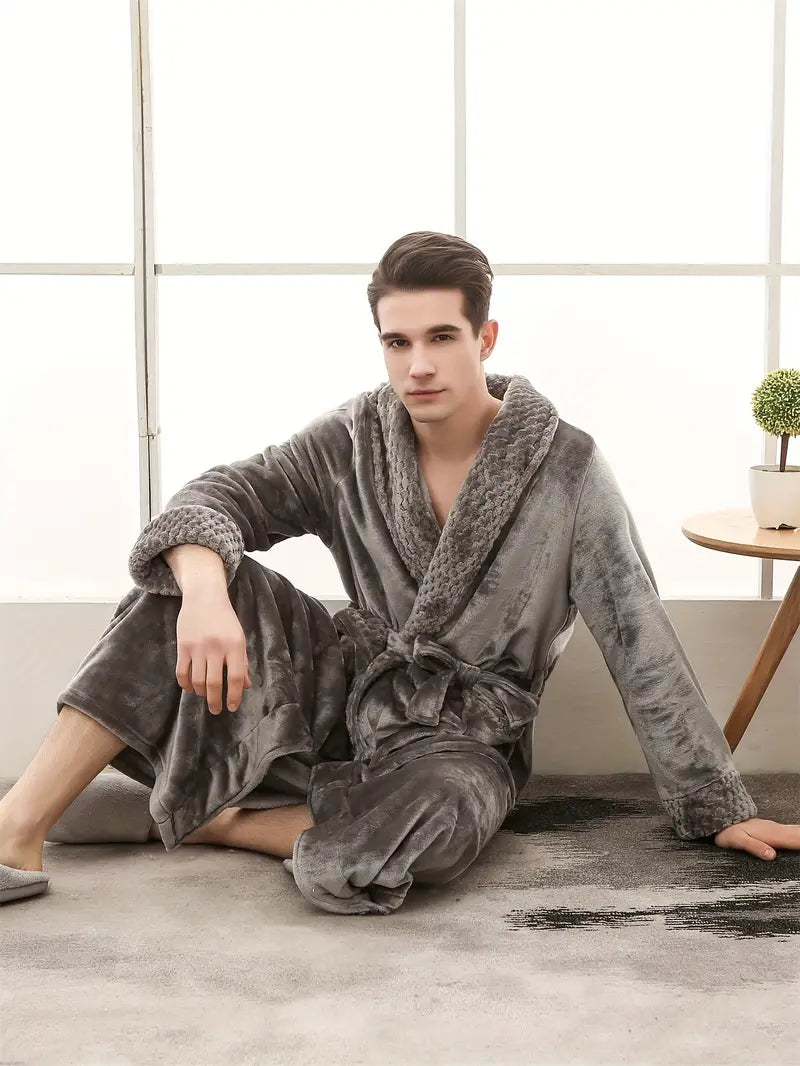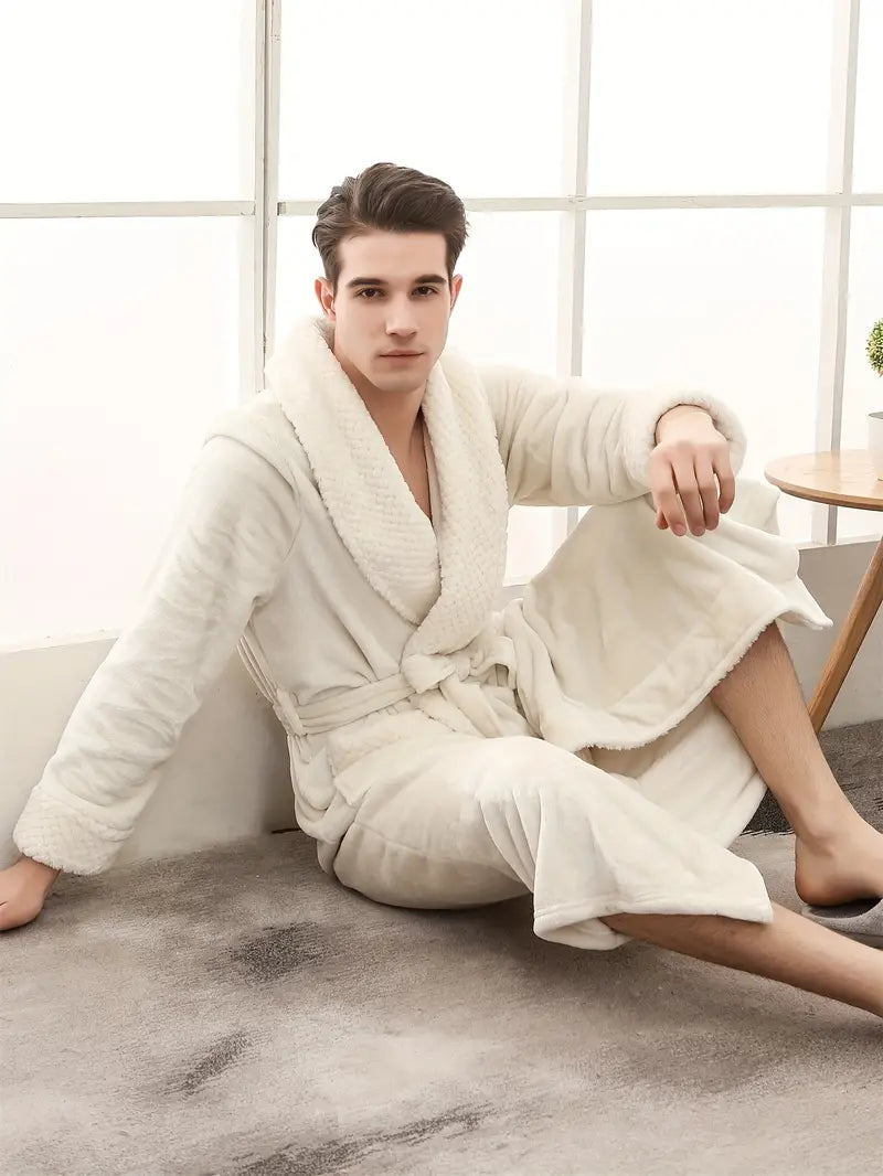 Le Peignoir d'hiver en polaire épaisse pour homme combine chaleur et douceur pour une sensation de confort absolu. Confectionné en éponge et polaire, il vous enveloppe dans un cocon chaud après chaque bain. Collection Peignoir homme.