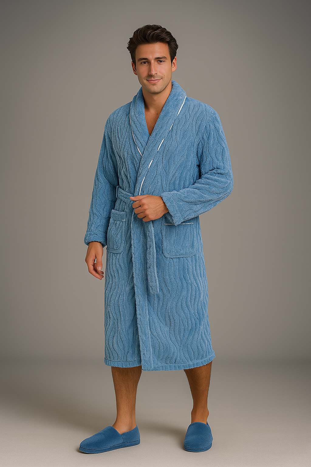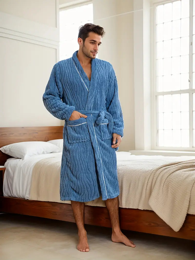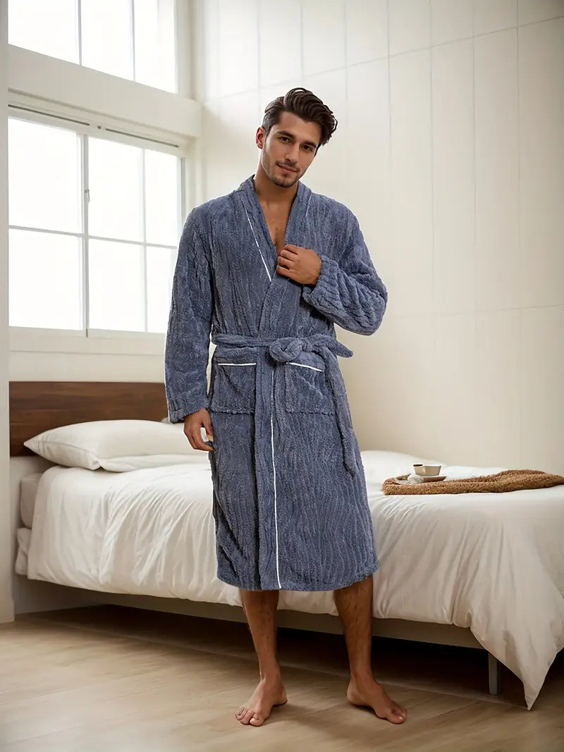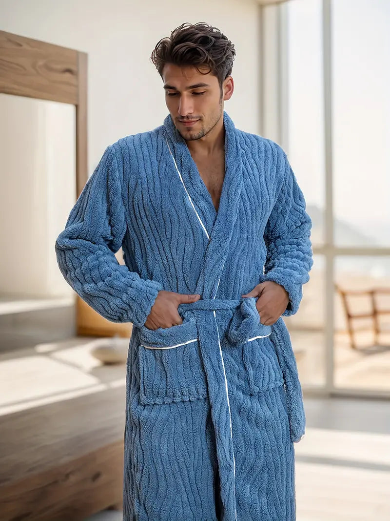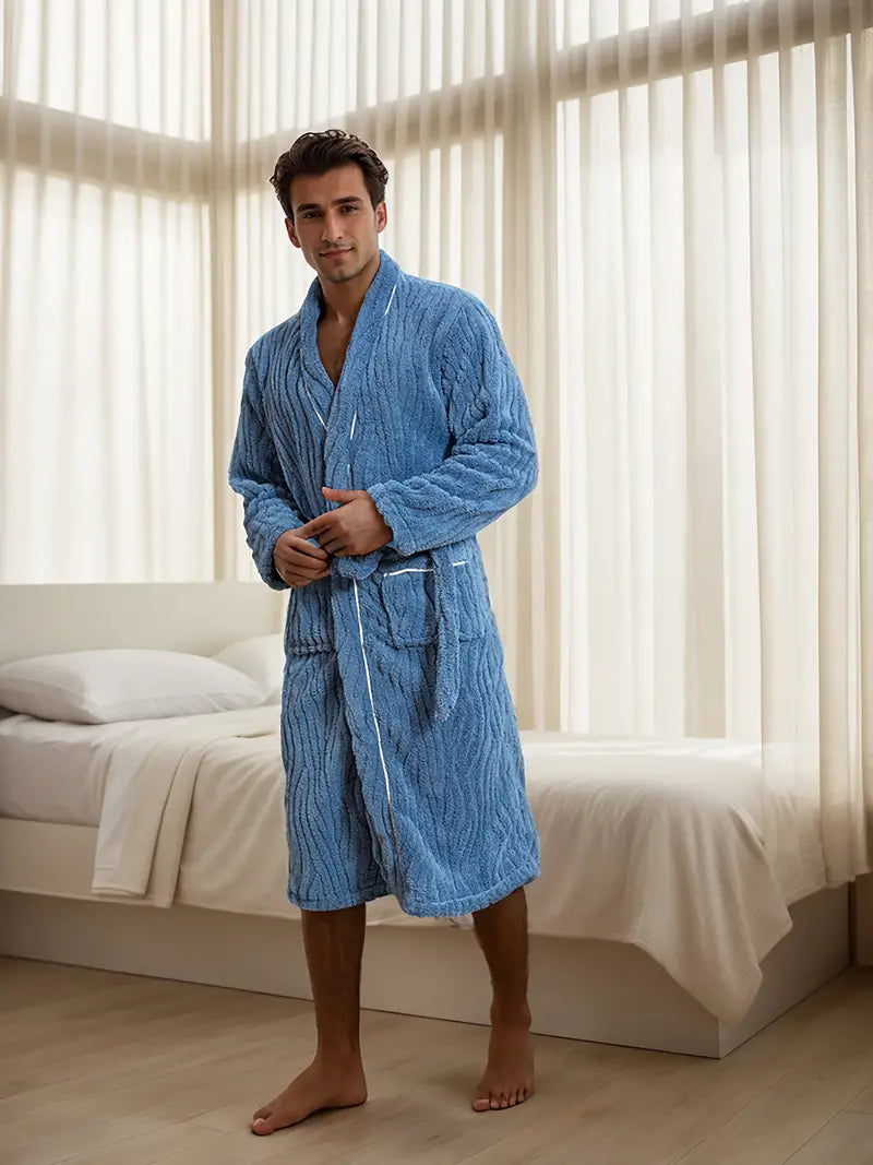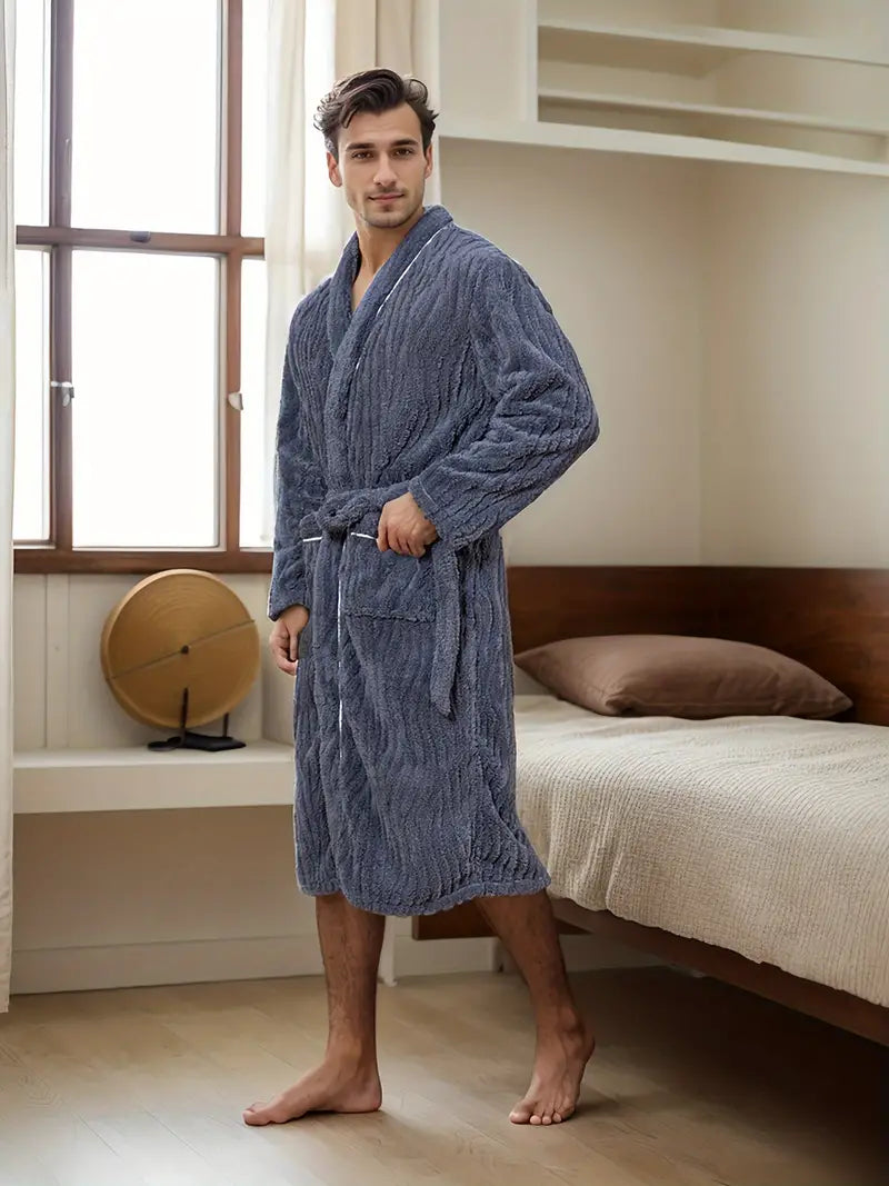Plongez dans le confort absolu avec le Peignoir en Éponge Épaisse et Douce pour homme. Confectionné en éponge de haute qualité et polaire, ce peignoir long et doux vous enveloppe de chaleur et de luxe. Collection Peignoir homme.