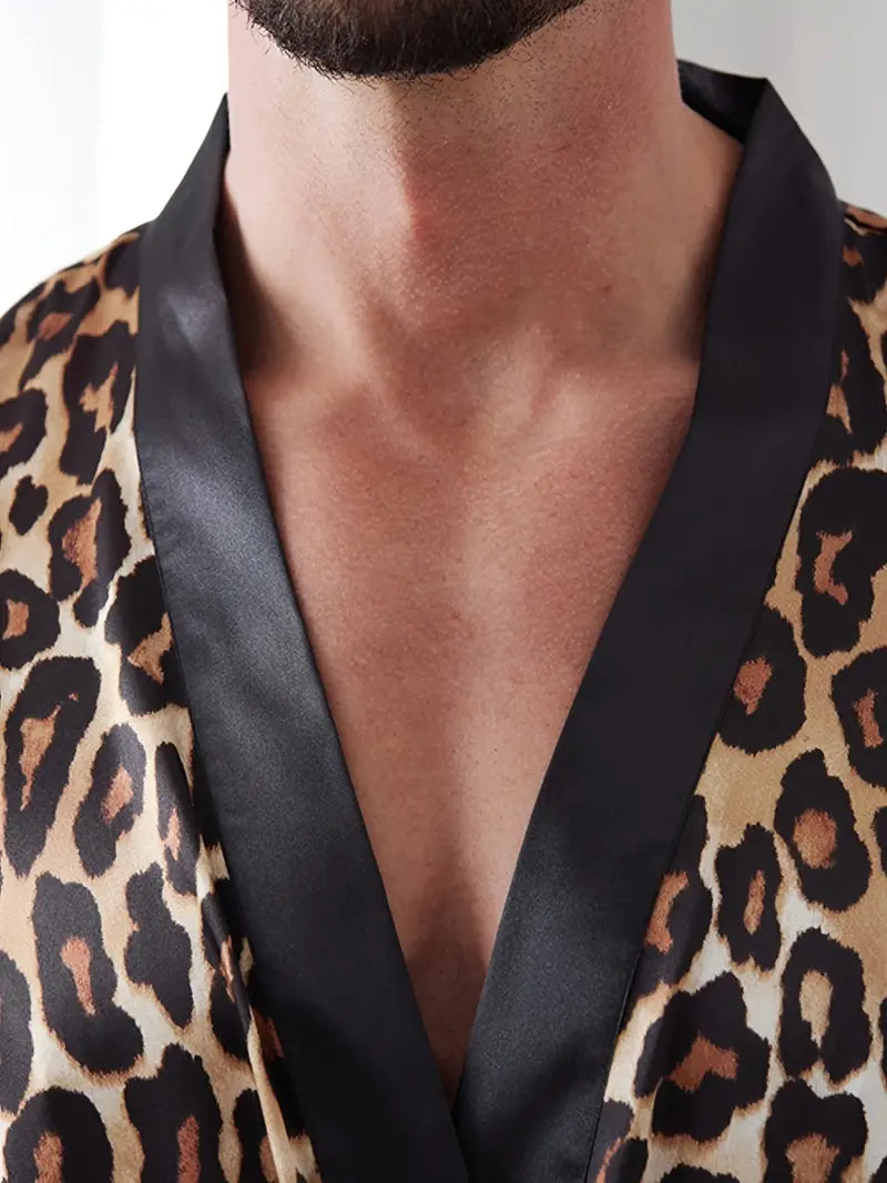 Découvrez l'alliance parfaite entre luxe et confort avec ce peignoir original en style kimono pour homme. Confectionné dans un tissu doux avec un imprimé Léopard, il est accompagné d'un short assorti pour une élégance sans effort après le bain. Ce modèle est un incontournable de la collection Peignoir homme luxe.