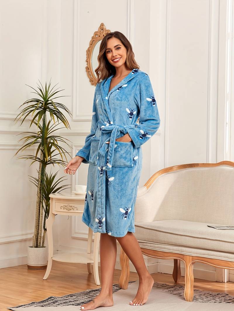 Découvrez le confort ultime avec ce peignoir polaire à imprimé d'abeille pour femme. Conçu en éponge épaisse et en coton, il offre une chaleur douce idéale après une douche ou un bain. Collection Peignoir de bain femme.