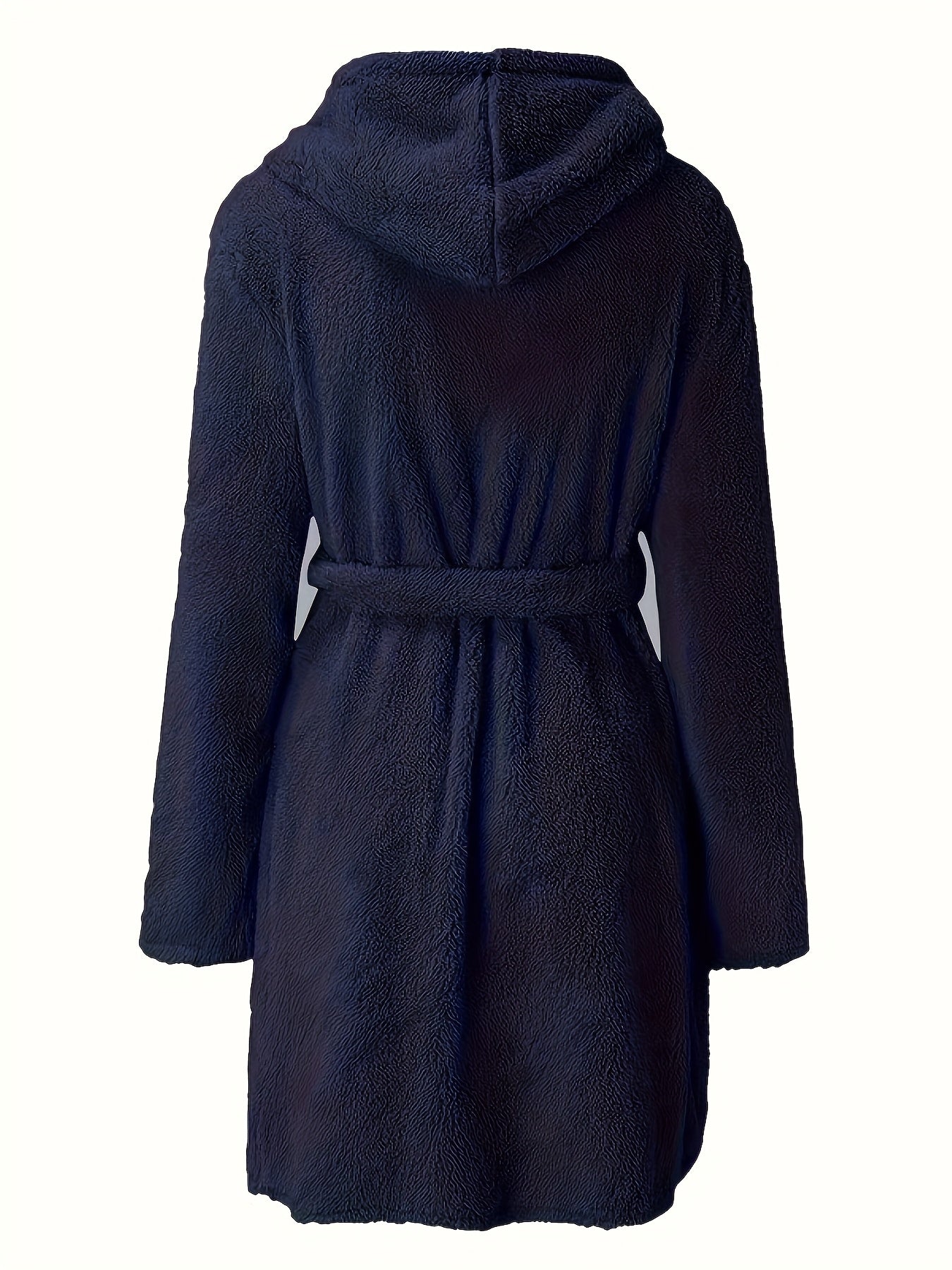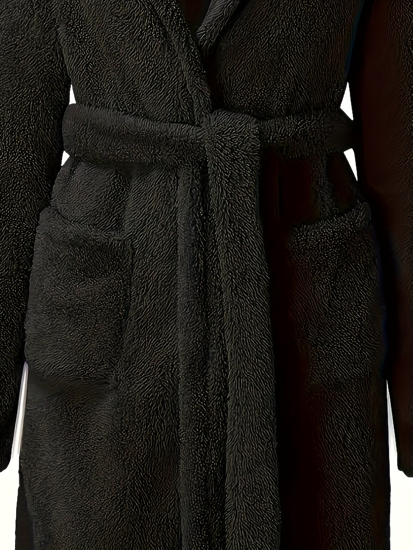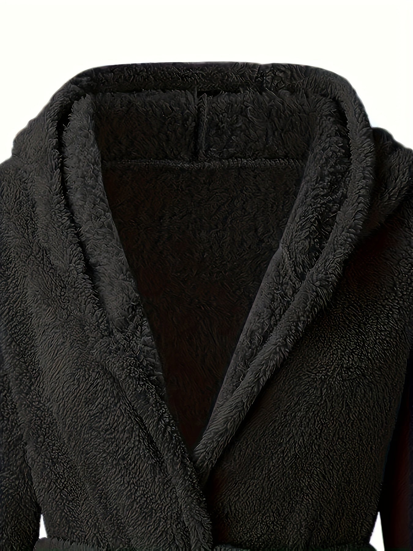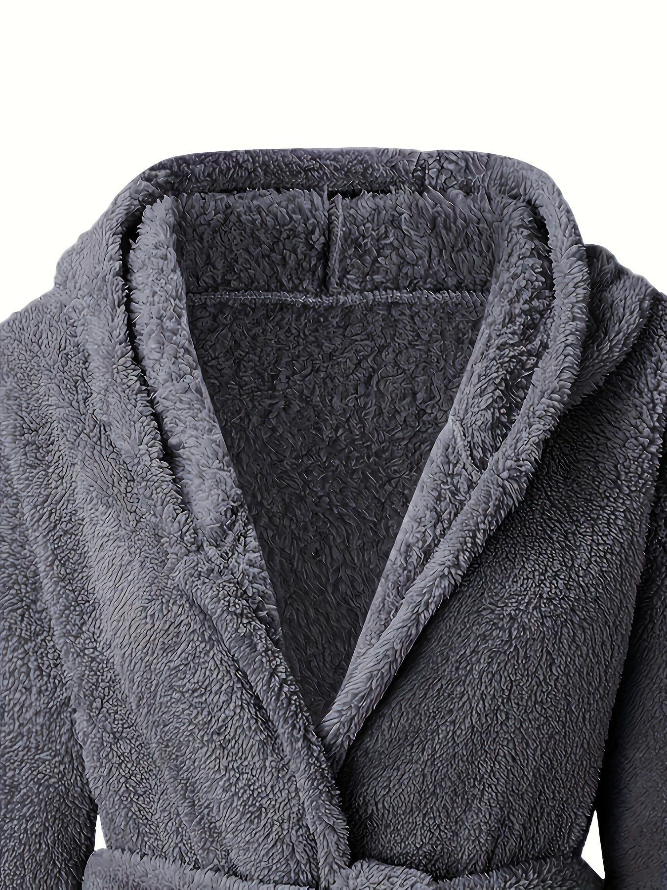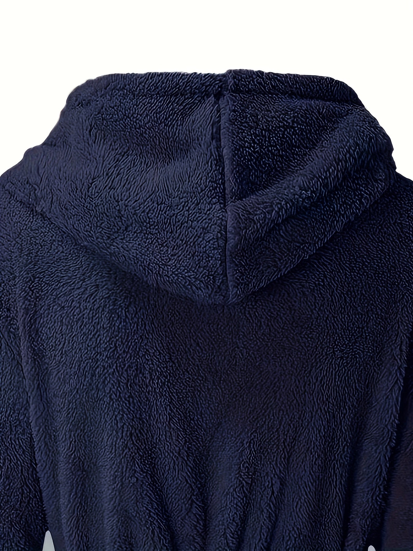 Peignoir polaire homme à capuche style sherpa ultra doux avec poche et ceinture, parfait pour l’hiver et les moments cocooning.